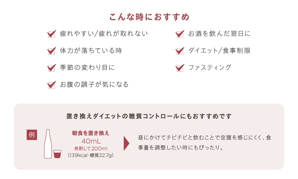 毎日の健康維持やファスティング・置き換えダイエット時の栄養サポートに。